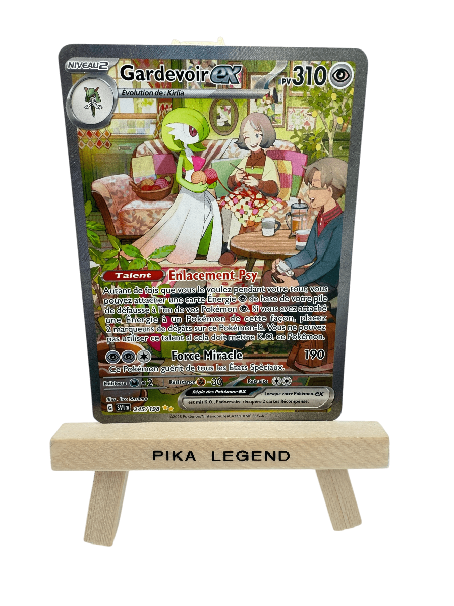 Découvre la splendide Gardevoir EX (SVI 245), issue de la série Écarlate et Violet. Cette carte rare met en lumière Gardevoir, l'un des Pokémon les plus appréciés, connu pour ses pouvoirs psychiques et son élégance. Avec ses attaques puissantes et son design brillant, Gardevoir EX est un ajout précieux à toute collection. Sa capacité à soutenir ses alliés tout en infligeant de lourds dégâts en fait une carte idéale pour renforcer tes stratégies de jeu. Ne manque pas cette pièce maîtresse, qui marie beauté et puissance, et qui est indispensable pour tous les fans de l’univers Pokémon et de la région de Paldea.